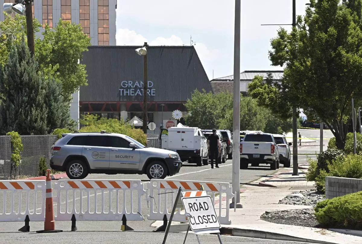 An entrance to the Grand Sierra Resort is closed after a shooting occurred at the resort in Reno, Nev., Monday, July 28, 2025. (AP Photo/Andy Barron)