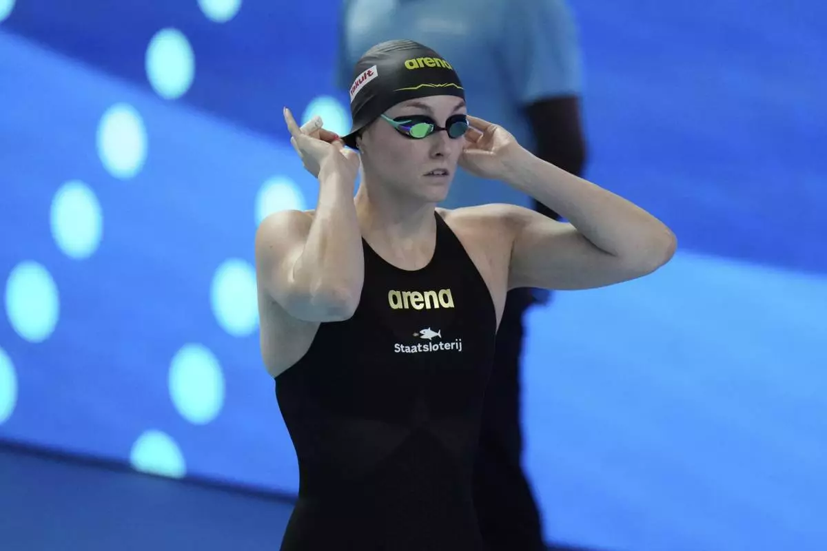 Marrit Steenbergen of Netherlands prepares to compete in the women's 100-meter freestyle final at the World Aquatics Championships in Singapore, Friday, Aug.1, 2025. (AP Photo/Lee Jin-man)