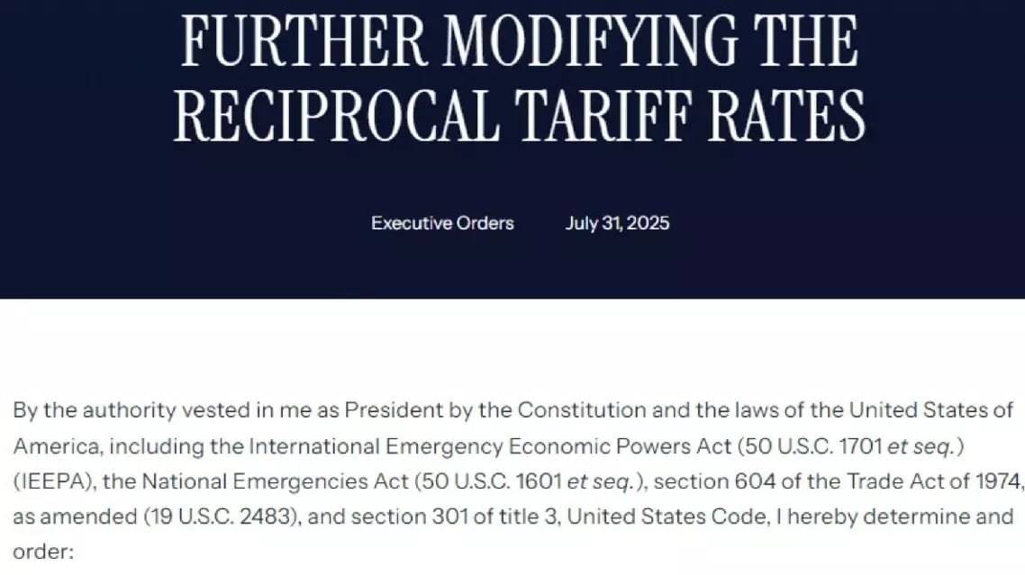 The new tariff rates will take effect seven days after the date of the executive order with exceptions on logistical grounds.