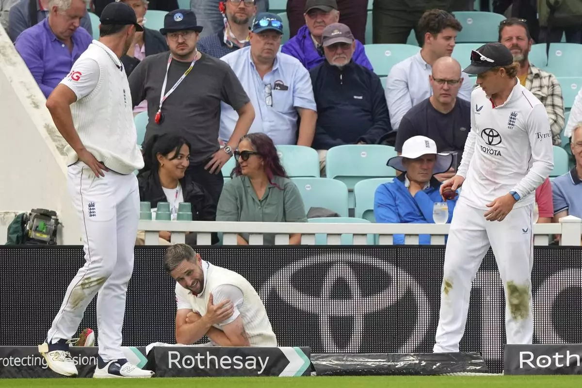 LONDON (AP) — England seamer Chris Woakes has been ruled out of the rest of the fifth and final test against India after injuring his shoulder.