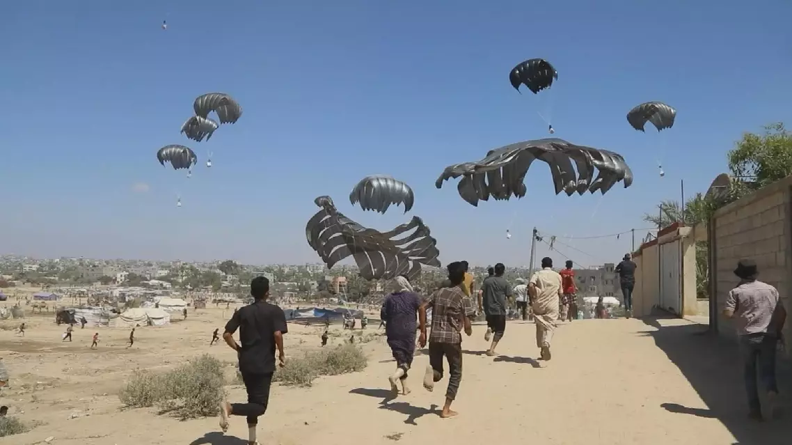 Humanitarian airdrops in Gaza have led to chaotic scenes as hundreds of thousands of displaced civilians scramble for life-saving aid, highlighting urgent calls for more organized and humane distribution methods.