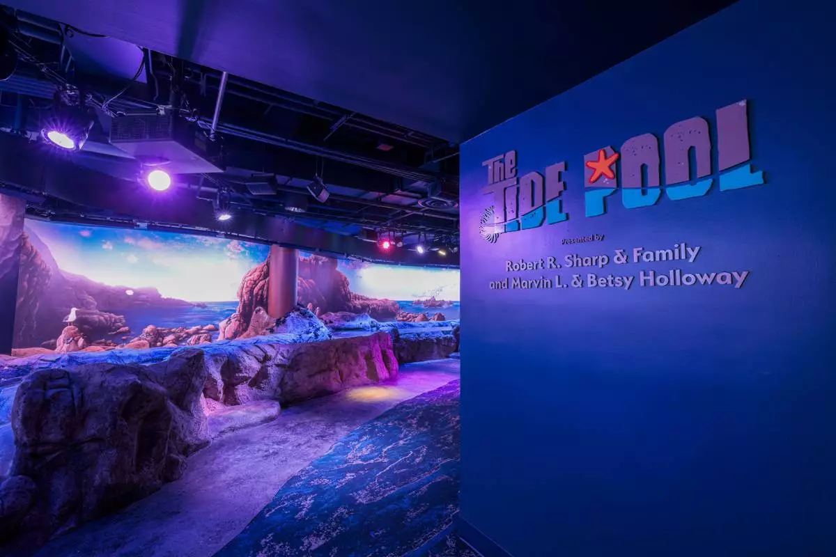 Built in six expansive segments and featuring a state-of-the-art wave action system, the exhibit delivers a multi-sensory experience. Projected wave effects and a 16-channel surround sound system bring the tide to life with the roar of crashing surf and the calls of seabirds. A custom mural by artist Curtis Stokes shifts from sunset to starlight and sunrise under UV-reactive lighting, creating a stunning, ever-changing backdrop for exploration.