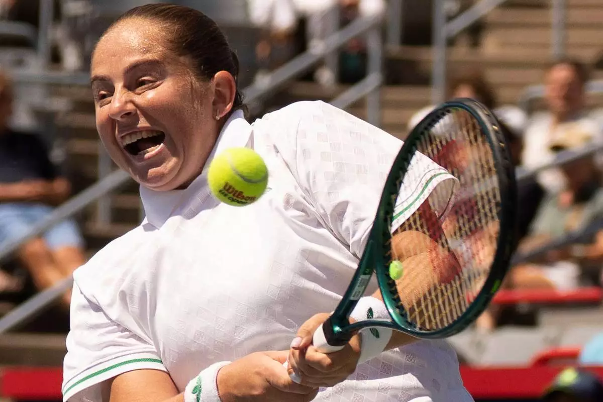 Jessica Pegula, of the United States, reacts during her match against Anastasija Sevastova, of Latvia, at the National Bank Open women’s tennis tournament, Friday, Aug. 1, 2025, in Montreal. (Christinne Muschi/The Canadian Press via AP)