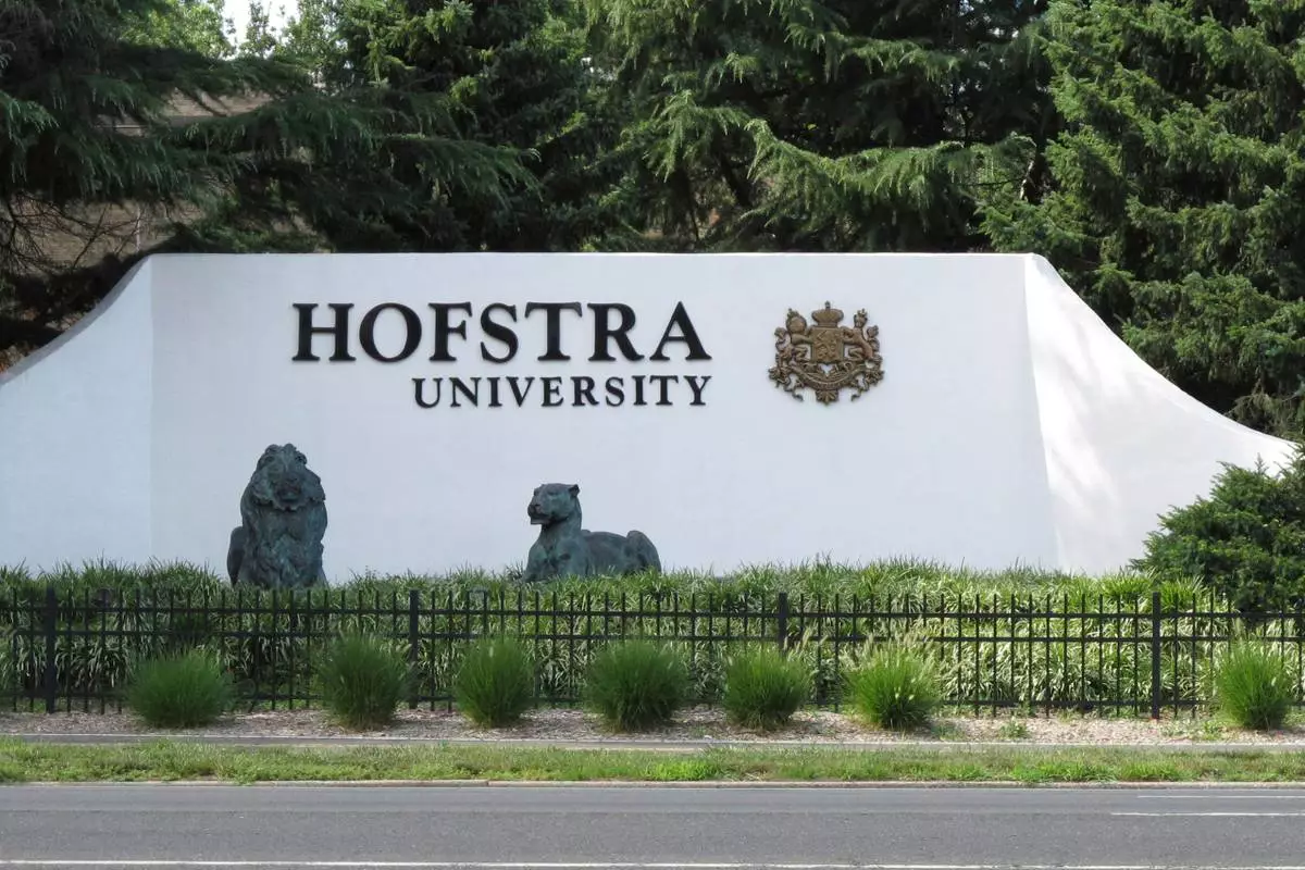 FILE - The entrance to Hofstra University is shown in Hempstead, N.Y., July 27, 2016. (AP Photo/Frank Eltman, File)