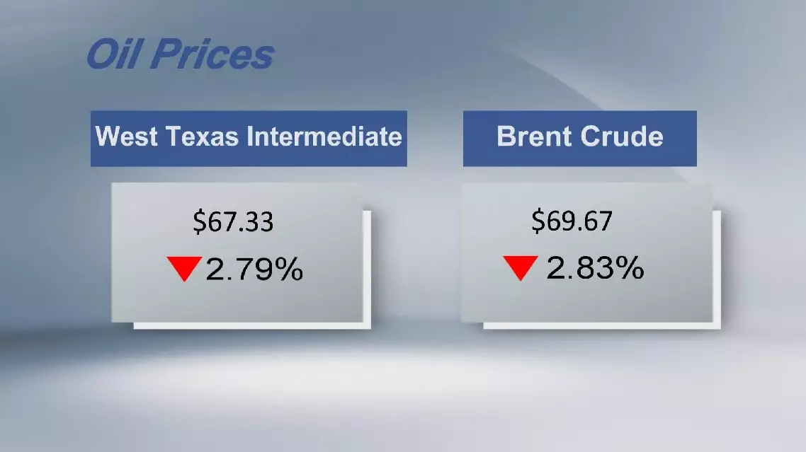 The West Texas Intermediate for September delivery lost 1.93 U.S. dollars, or 2.79 percent, to settle at 67.33 dollars a barrel on the New York Mercantile Exchange. Brent crude for October delivery dropped 2.03 dollars, or 2.83 percent, to settle at 69.67 dollars a barrel on the London ICE Futures Exchange.