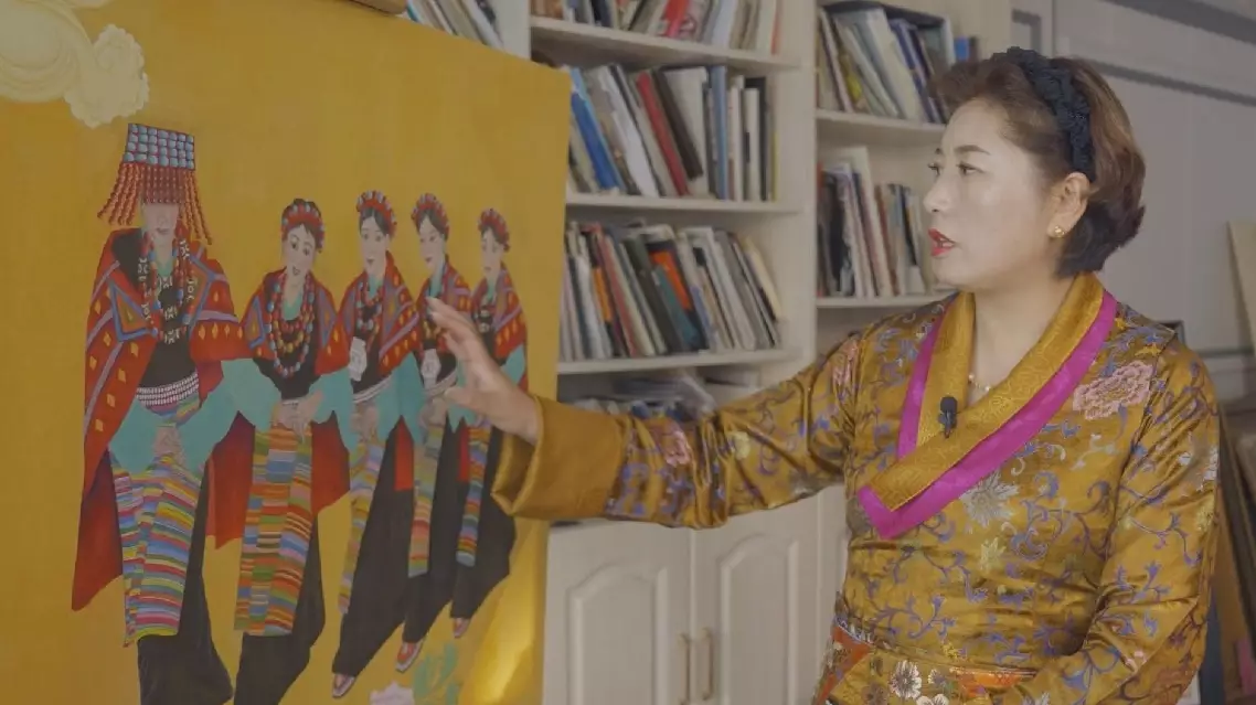 "When I saw these women dressed in traditional attire performing folk dances, and their faces were radiant with joy, I could feel their deep love for their land and their lives. It touched me deeply, and I wanted to capture that moment with my brush. I hope to touch more people and help them better understand Xizang through my paintings," she said.