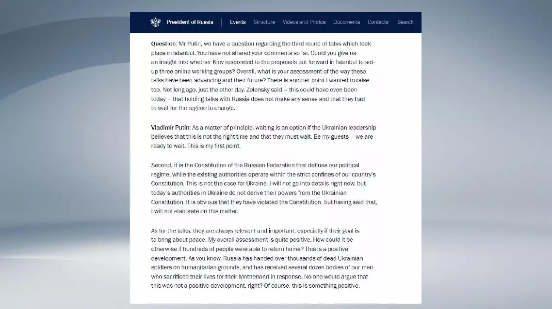 Putin also highlighted the achievements of the previous talks, including the mutual handover of soldiers' bodies and the exchange of prisoners.