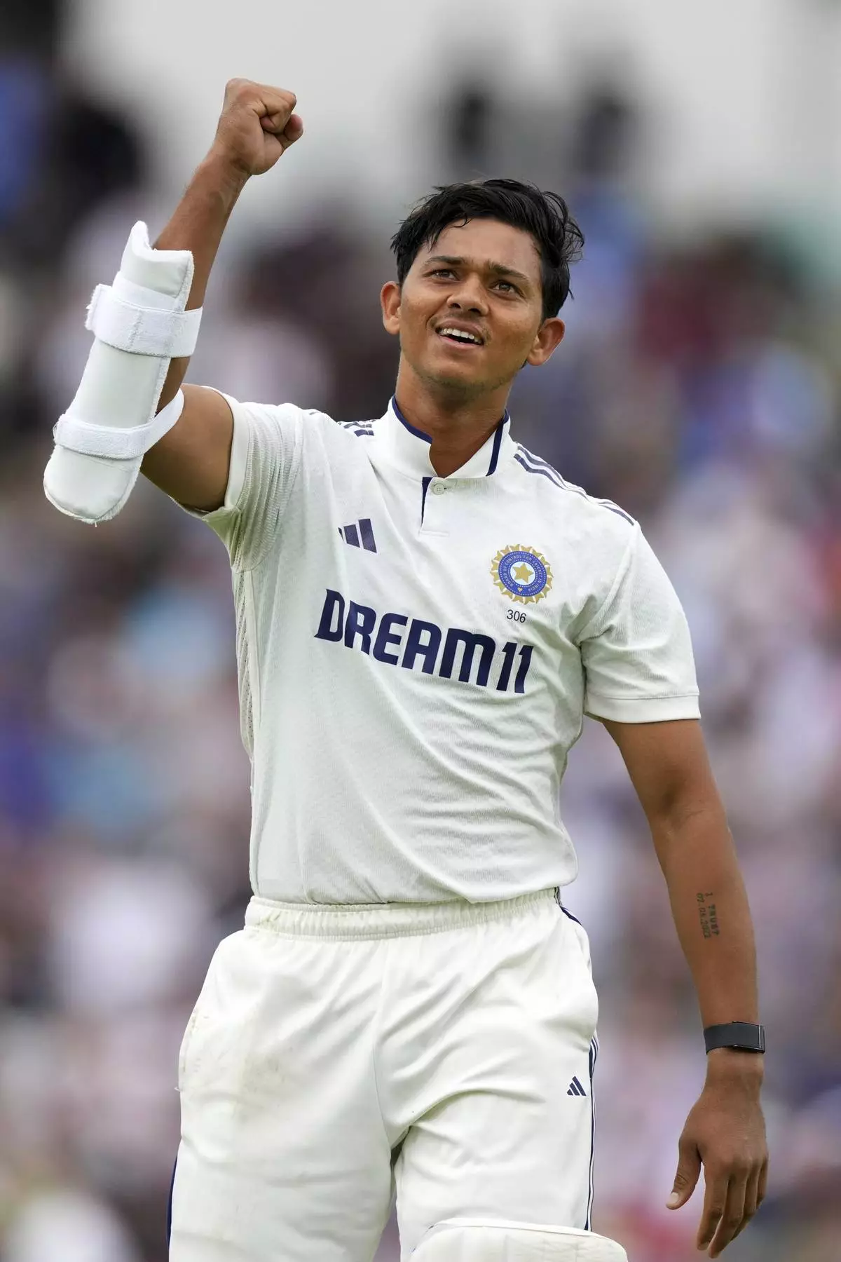Earlier, the left-handed Jaiswal turned his 127th ball of the innings to point and was celebrating his hundred before he ran the single he needed; leaping, running and shaping his fingers into a heart.