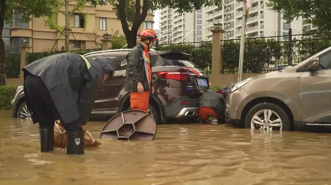 In Wenzhou City, east China's Zhejiang province, a three-hour downpour on Friday left roads in Xiaojiang town submerged under waist-deep water, affecting over 300 households.