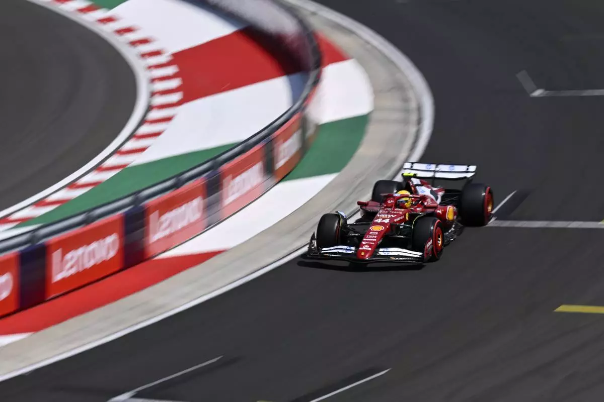 Ferrari driver Lewis Hamilton of Britain steers his car during the third free practice at the Hungaroring racetrack in Mogyorod, Hungary, Saturday, Aug. 2, 2025, ahead of the Hungarian Formula One Grand Prix. (AP Photo/Denes Erdos)