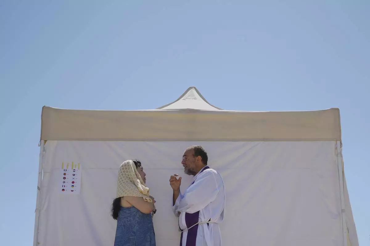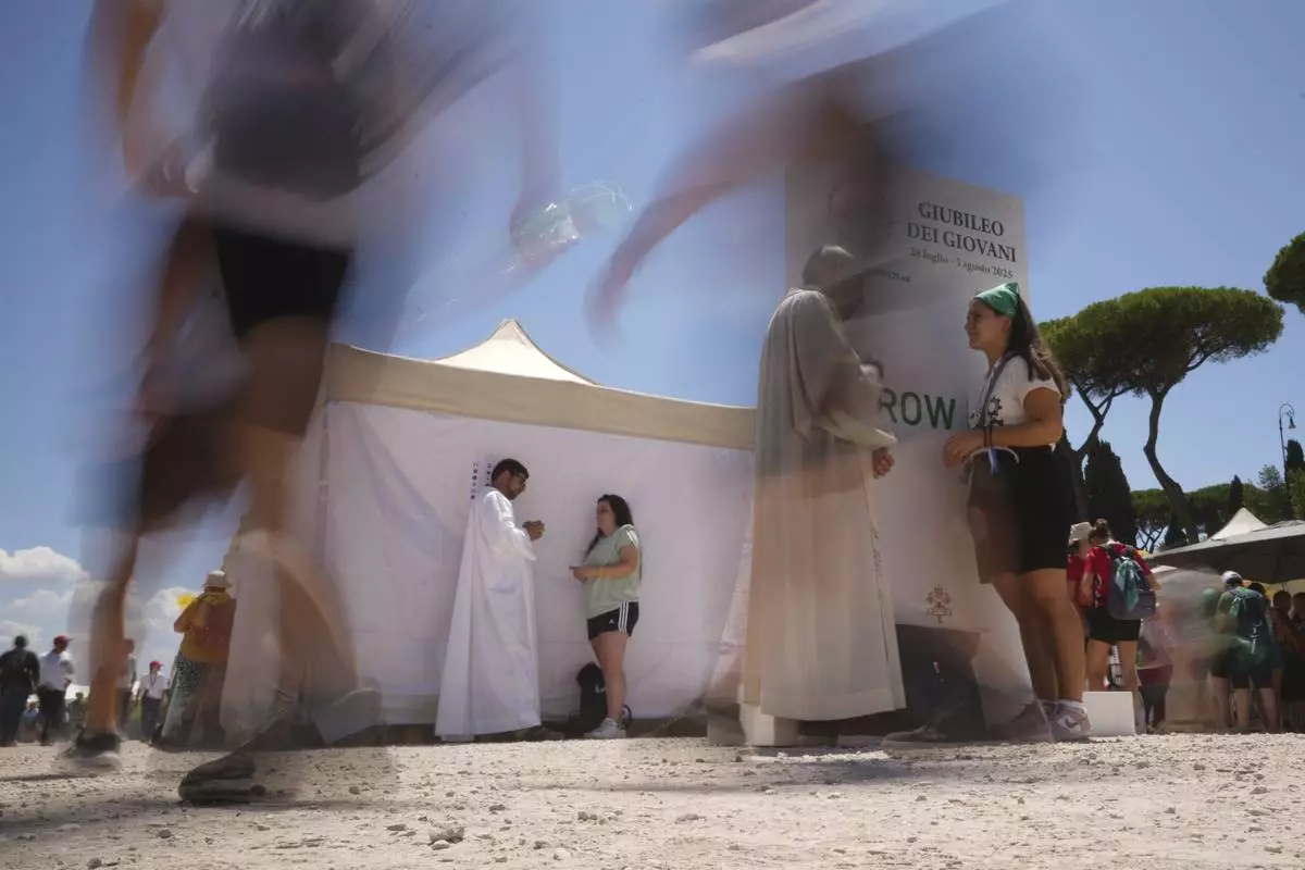 Young people participate in the Youth Jubilee can celebrate the penitential day and confess themselves in the confessionals set up for them in the Circus Maximus in Rome, Friday, Aug. 1, 2025. (AP Photo/Andrew Medichini)