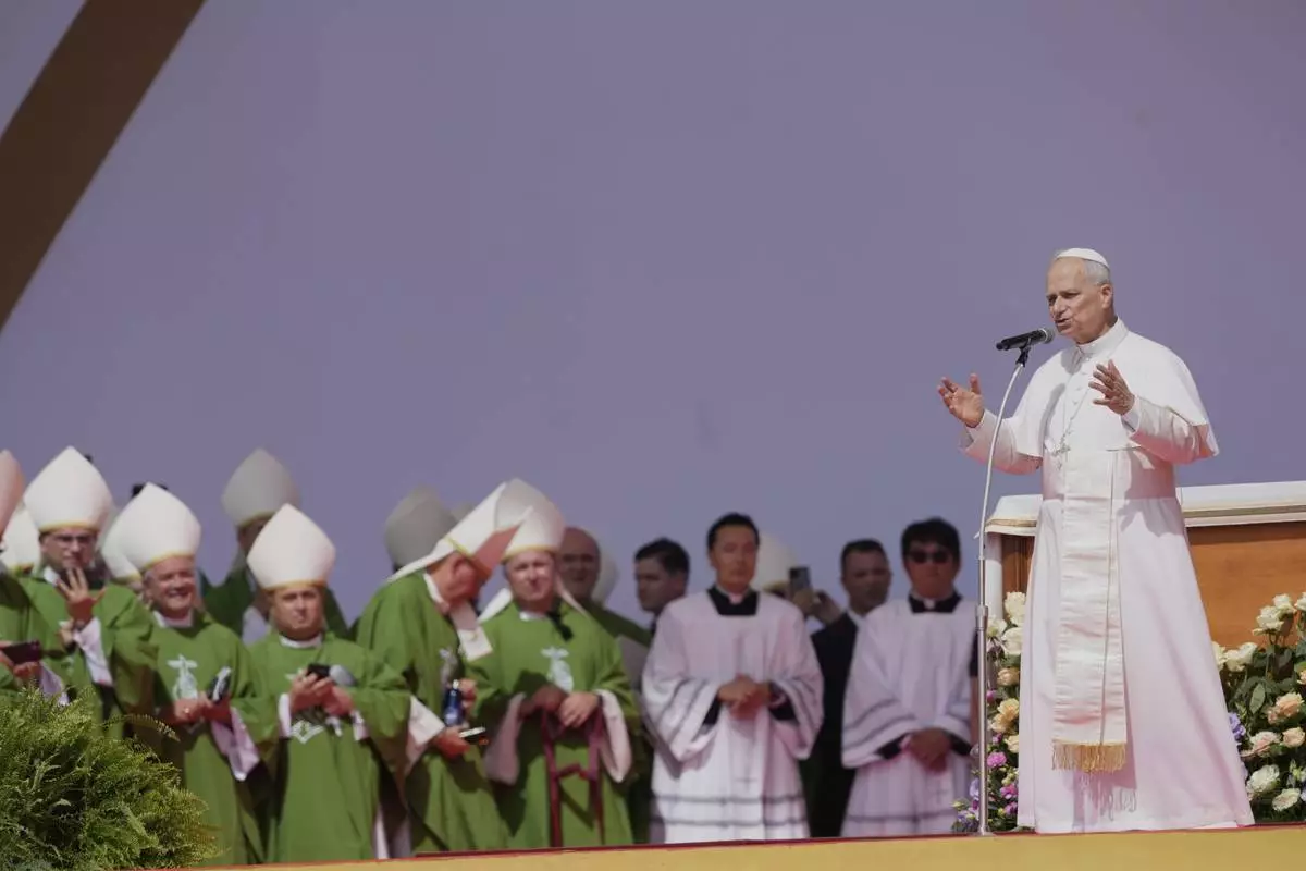 Pope Leo XIV holds a Mass with young people participating in the Youths Jubilee at the Tor Vergata field in Rome, Sunday, Aug. 3, 2025. (AP Photo/Andrew Medichini)