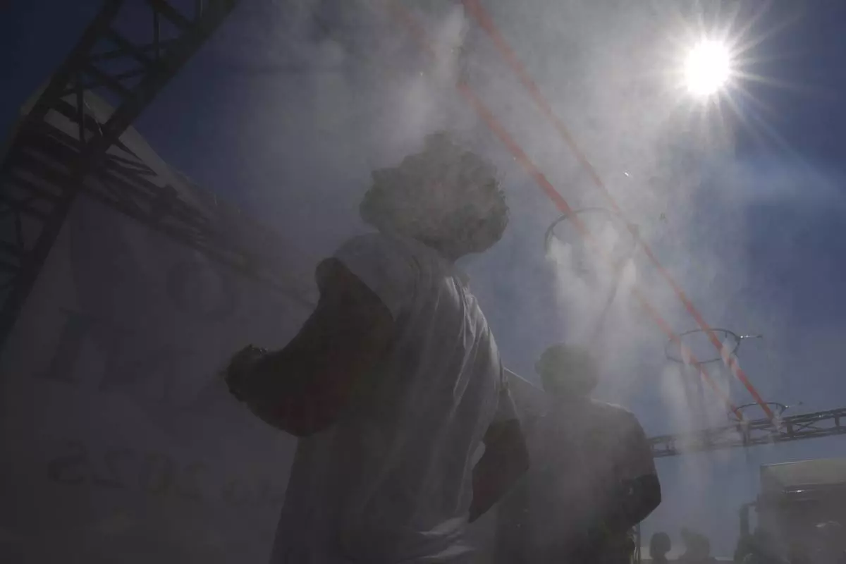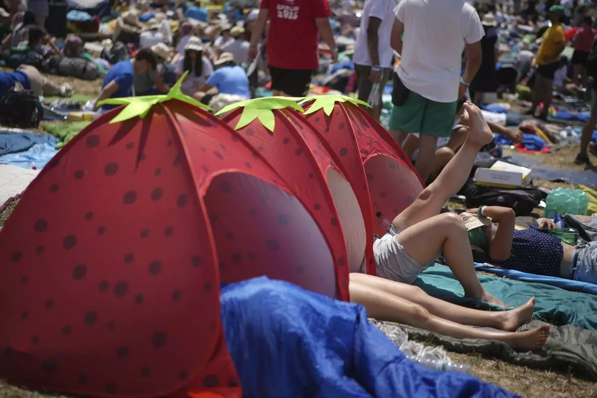 Young people wake up after spending the night at the Tor Vergata field in Rome as they participate in the Youths Jubilee, Sunday, Aug. 3, 2025. (AP Photo/Andrew Medichini)