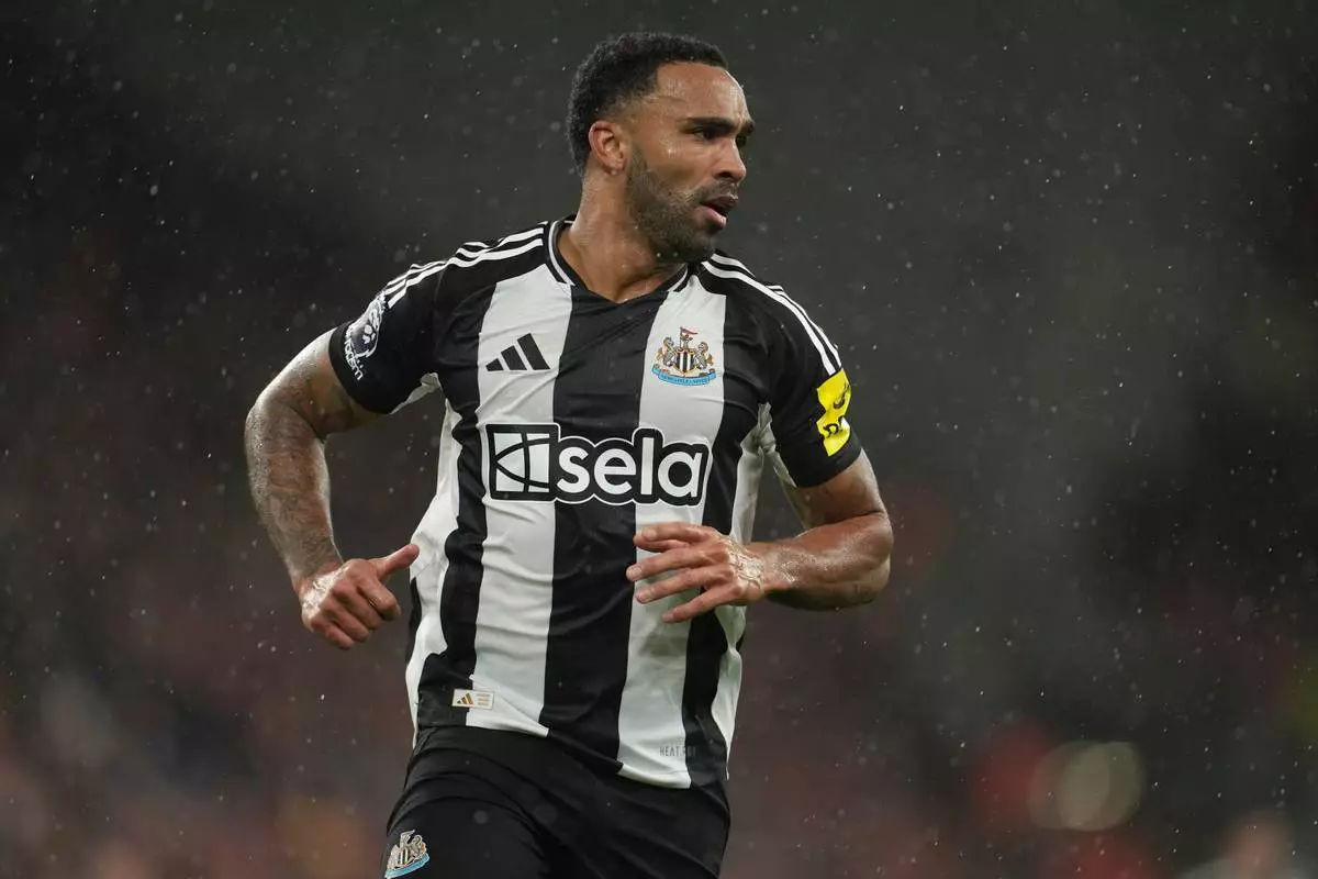 FILE - Newcastle's Callum Wilson during the English Premier League soccer match between Liverpool and Newcastle United at Anfield in Liverpool, Feb. 26, 2025. (AP Photo/Jon Super, File)