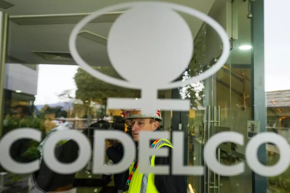A worker stands inside an office of Codelco, the company that operates the El Teniente copper mine, where a cave-in killed one worker and trapped five others underground, halting operations in Rancagua, Chile, Saturday, Aug. 2, 2025. (AP Photo/Esteban Felix)