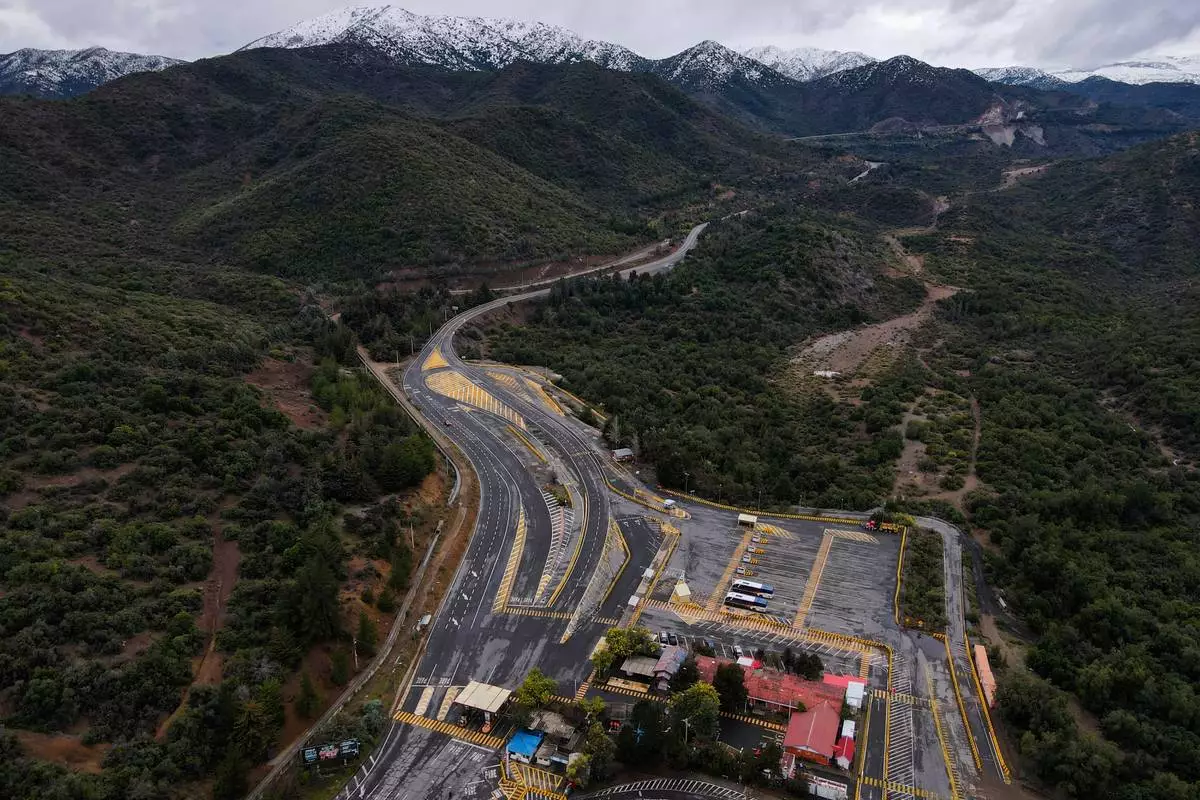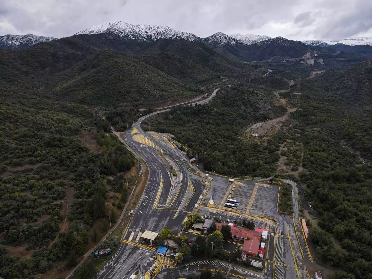 An aerial view of El Teniente copper mine, operated by Codelco, where a cave-in killed one worker and trapped five others underground, halting operations in Rancagua, Chile, Saturday, Aug. 2, 2025. (AP Photo/Esteban Felix)