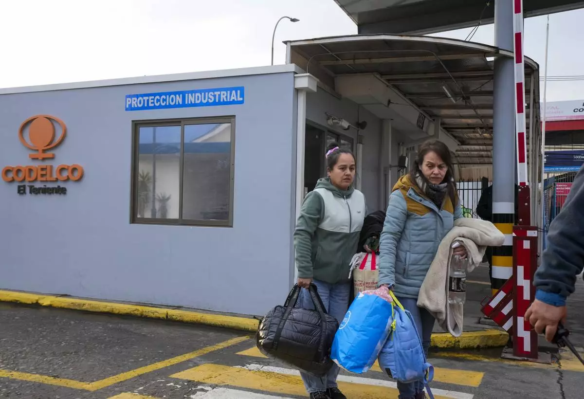 Relatives of a missing miner arrive to the offices of Codelco, operators of El Teniente copper mine, where a cave-in killed one worker and trapped five others underground, halting operations in Rancagua, Chile, Saturday, Aug. 2, 2025. (AP Photo/Esteban Felix)