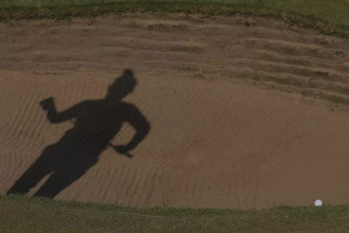 Miyu Yamashita of Japan prepares to play out of a bunker on the 17th green during the third round of the Women's British Open golf championship, at Royal Porthcawl Golf Club in Porthcawl, Wales, Saturday, Aug. 2, 2025. (AP Photo/Kin Cheung)