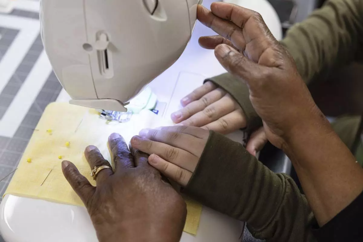“Slowly, slowly,” one grandma chided as Moten stomped on the machine's pedal, causing the needle to rapidly jerk up and down.