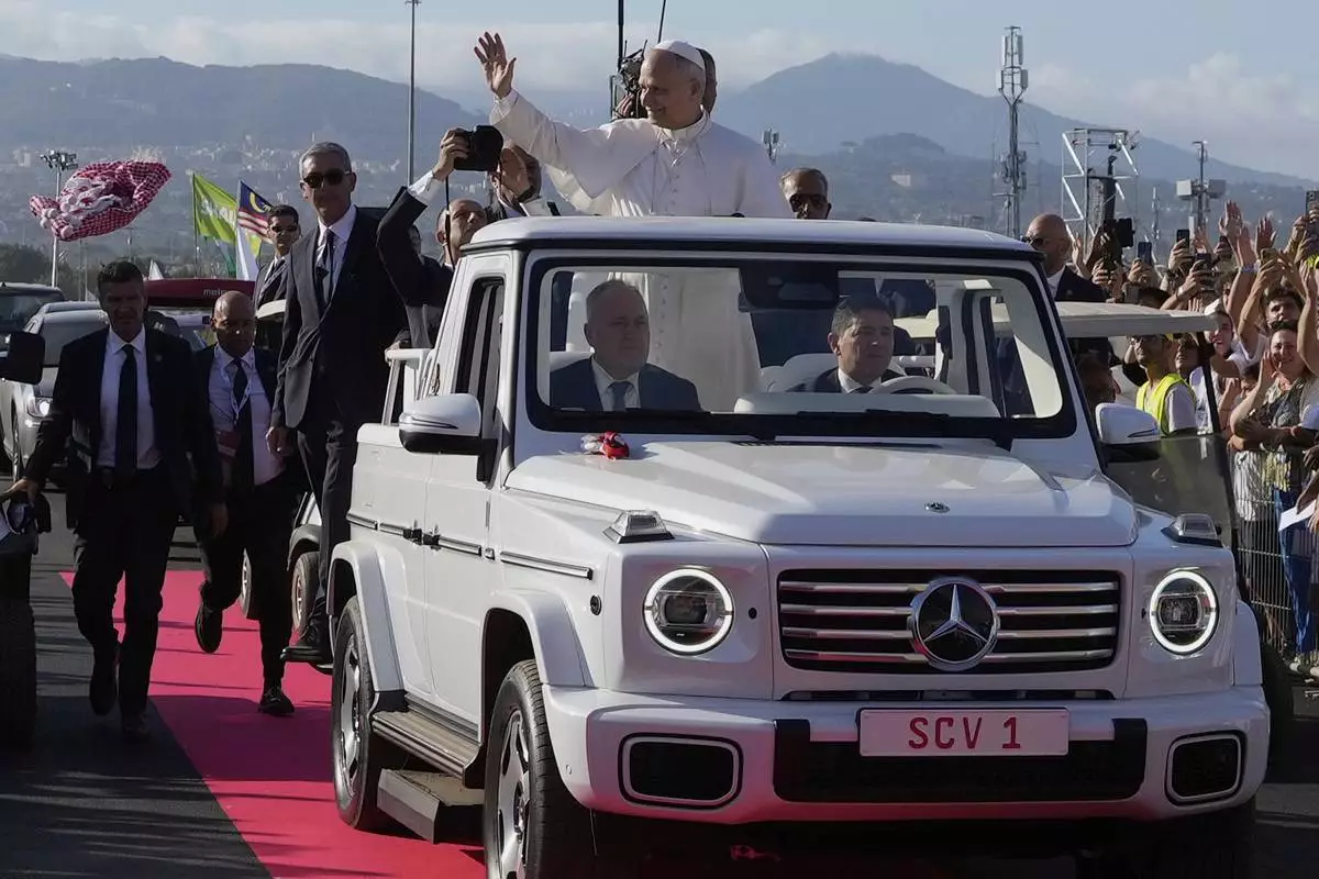 Pope Leo XIV leaves at the end of a Mass with young people participating in the Youths Jubilee at the Tor Vergata field in Rome, Sunday, Aug. 3, 2025. (AP Photo/Andrew Medichini)