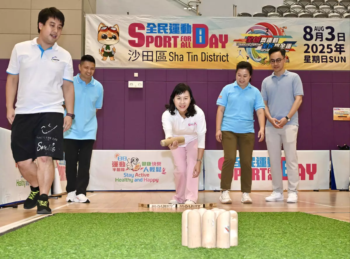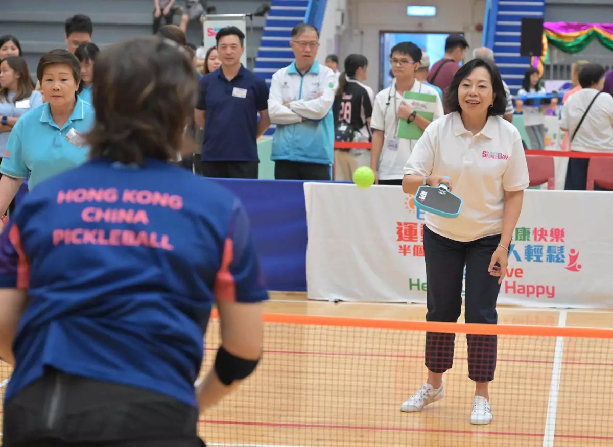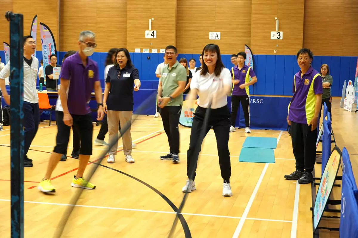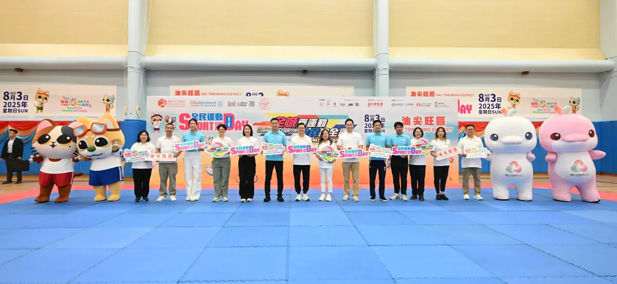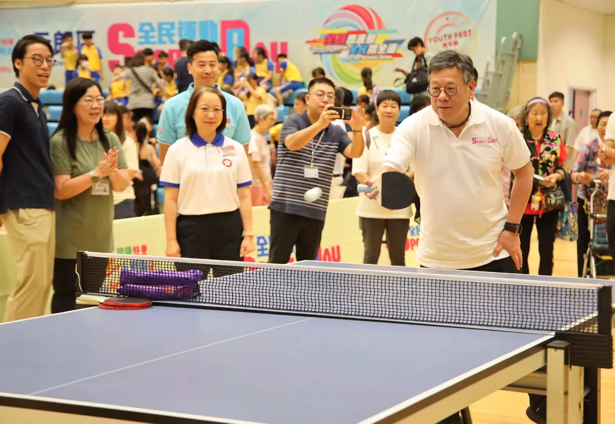Sixteen Principal Officials also supported SFAD 2025 by joining the recreation and sports activities held at the sports centres in various districts. They were the Chief Secretary for Administration, Mr Chan Kwok-ki; the Financial Secretary, Mr Paul Chan; the Deputy Chief Secretary for Administration, Mr Cheuk Wing-hing; the Deputy Secretary for Justice, Dr Cheung Kwok-kwan; the Secretary for Constitutional and Mainland Affairs, Mr Erick Tsang Kwok-wai; the Secretary for Financial Services and the Treasury, Mr Christopher Hui; the Secretary for Security, Mr Tang Ping-keung; the Secretary for Commerce and Economic Development, Mr Algernon Yau; the Secretary for Health, Professor Lo Chung-mau; the Secretary for Development, Ms Bernadette Linn; the Secretary for Education, Dr Choi Yuk-lin; the Secretary for Home and Youth Affairs, Miss Alice Mak; the Secretary for Transport and Logistics, Ms Mable Chan; the Acting Secretary for Labour and Welfare, Mr Ho Kai-ming; the Acting Secretary for Innovation, Technology and Industry, Ms Lillian Cheong; and the Acting Secretary for Environment and Ecology, Miss Diane Wong, enjoying the fun of sports and welcoming the National Games together with members of the public.