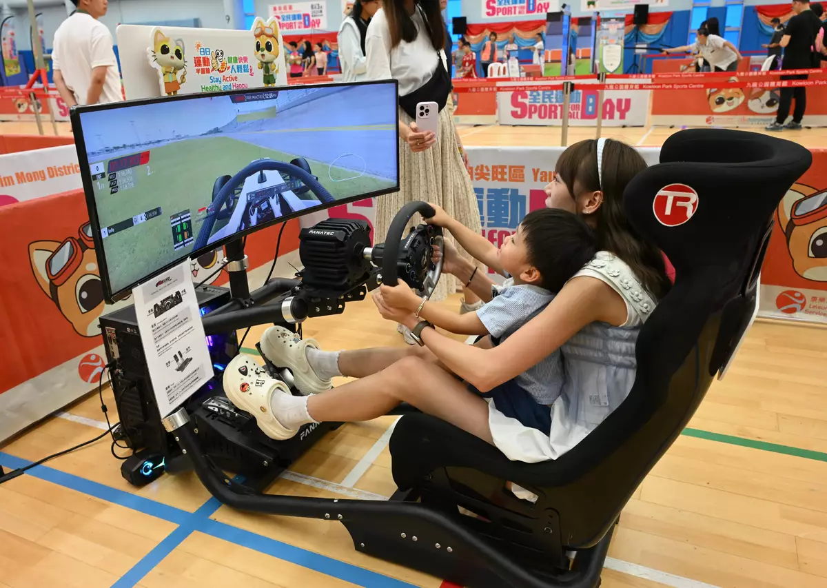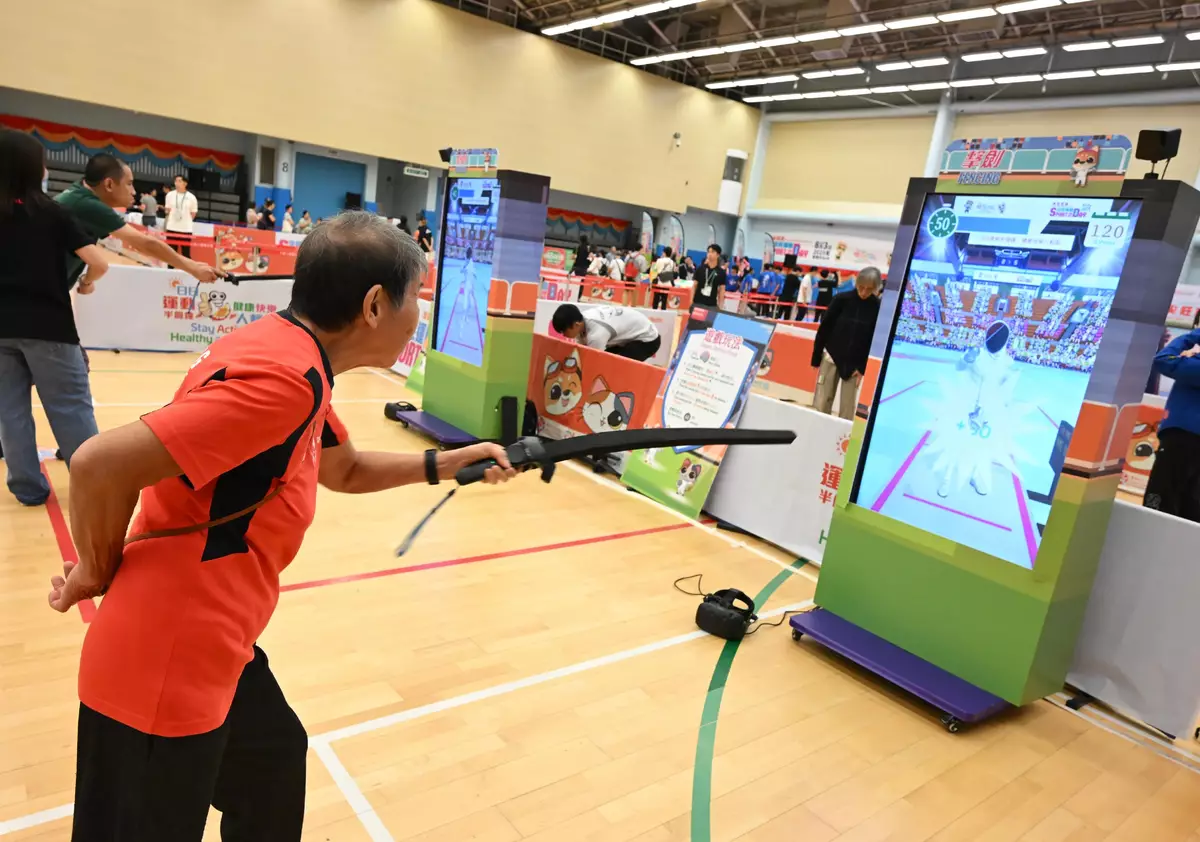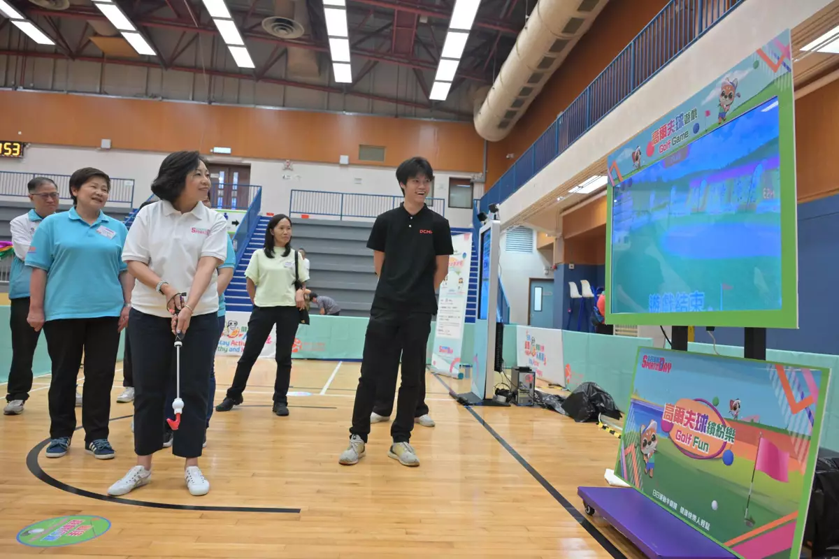 The guests enjoyed the cheerleading and breaking performances, and joined rugby, virtual fencing, virtual triathlon, golf, virtual karting games, as well as table tennis fun activities for persons with different abilities. They also visited the games booth of the Festival of Sport organised by the Sports Federation & Olympic Committee of Hong Kong, China (SF&OC).