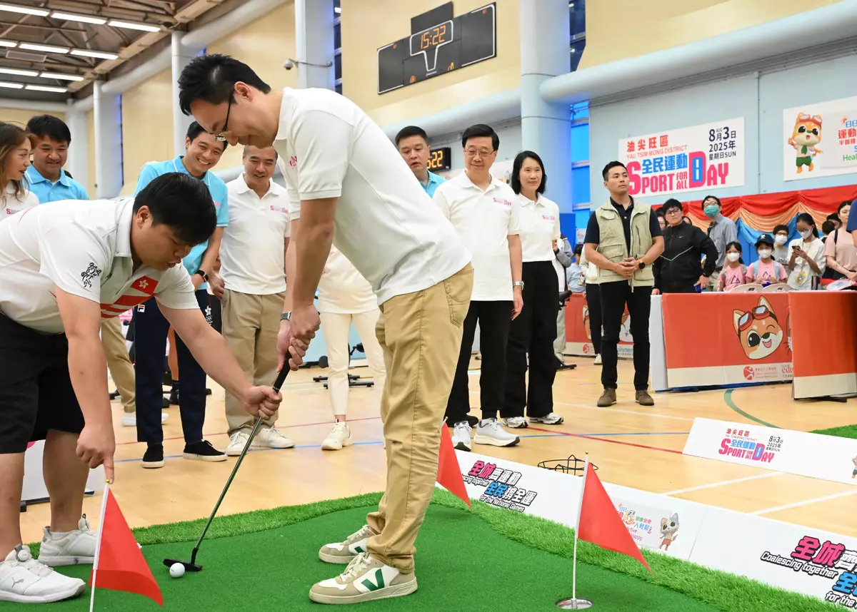 The Chief Executive, Mr John Lee, this afternoon (August 3) attended activities at the Kowloon Park Sports Centre main venue of the Sport For All Day (SFAD) 2025 held by the Leisure and Cultural Services Department (LCSD), conveying to the public the benefits of regular exercise for physical and mental well-being.