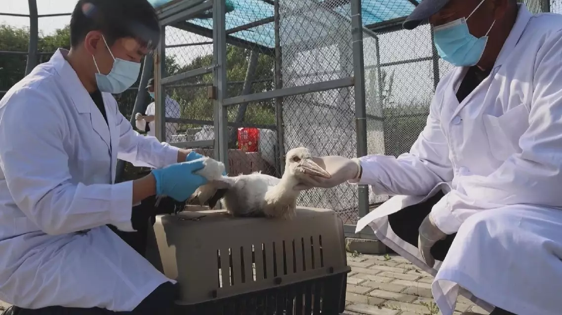 "It was found in marshes near a man-made nest in our breeding zone. We believe it fell from the nest. The chick was critically weak when discovered, so we brought it back," said Liu Yulin, monitor of Xingkai Lake National Nature Reserve.