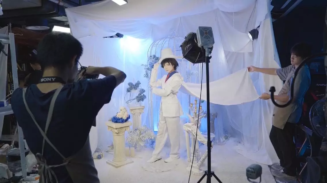 At an anime photo studio in a shopping mall in Shanghai, customers can enjoy the whole services of cosplay clothing, makeup, photography and photo editing.