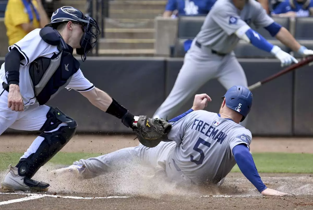 TAMPA, Fla. (AP) — Freddie Freeman scored one run and drove in another to snap Los Angeles' 18-inning scoreless drought and lead the Dodgers over the Tampa Bay Rays 3-0 on Sunday.