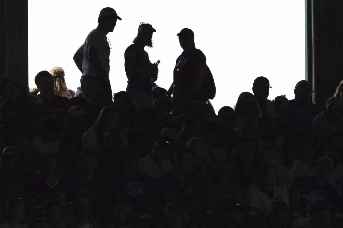 People look on during the seventh inning of a baseball game between the Baltimore Orioles and the Chicago Cubs in Chicago, Sunday, Aug. 3, 2025. (AP Photo/Nam Y. Huh)