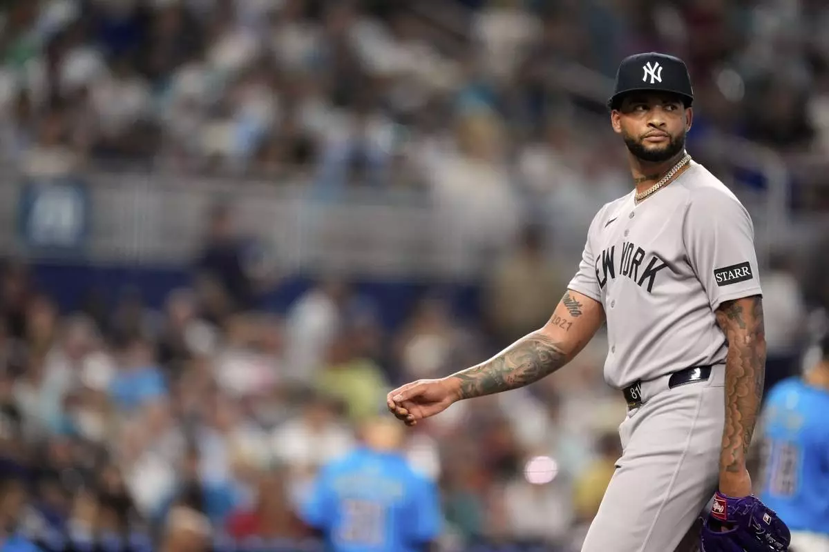 The Yankees’ young right-hander lasted just 3 1/3 innings after allowing five hits and five runs in a 7-3 loss to the Marlins that marked the first Miami sweep of New York in franchise history.