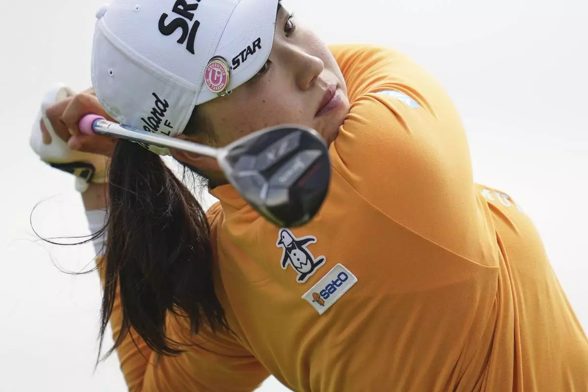 Miyu Yamashita of Japan plays a shot from the 2nd tee during the final round of the Women's British Open golf championship, at Royal Porthcawl Golf Club in Porthcawl, Wales, Sunday, Aug. 3, 2025. (AP Photo/Kin Cheung)