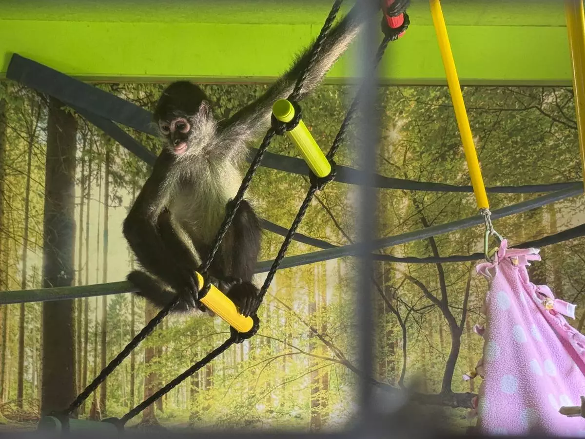 Her 15-acre property, nestled amid woods and farmland, is filled with rescue dogs, two rather noisy geese and a black cat. It's also now home to three spider monkeys, two squirrel monkeys and two kinkajous, a tropical mammal that is closely related to raccoons.