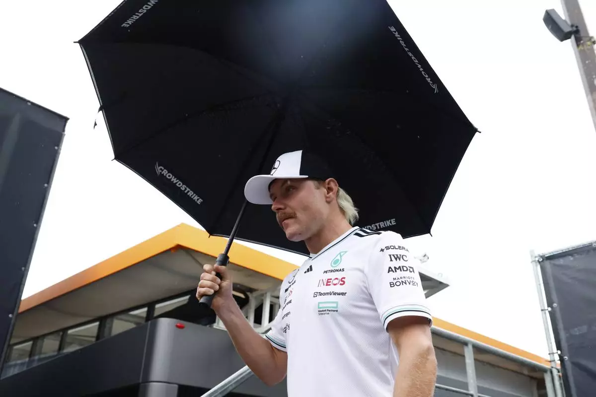 Reserve Mercedes driver Valtteri Bottas of Finland arrives in the paddock ahead of the Formula One Grand Prix at the Spa-Francorchamps racetrack in Spa, Belgium, Thursday, July 24, 2025. (AP Photo/Geert Vanden Wijngaert)