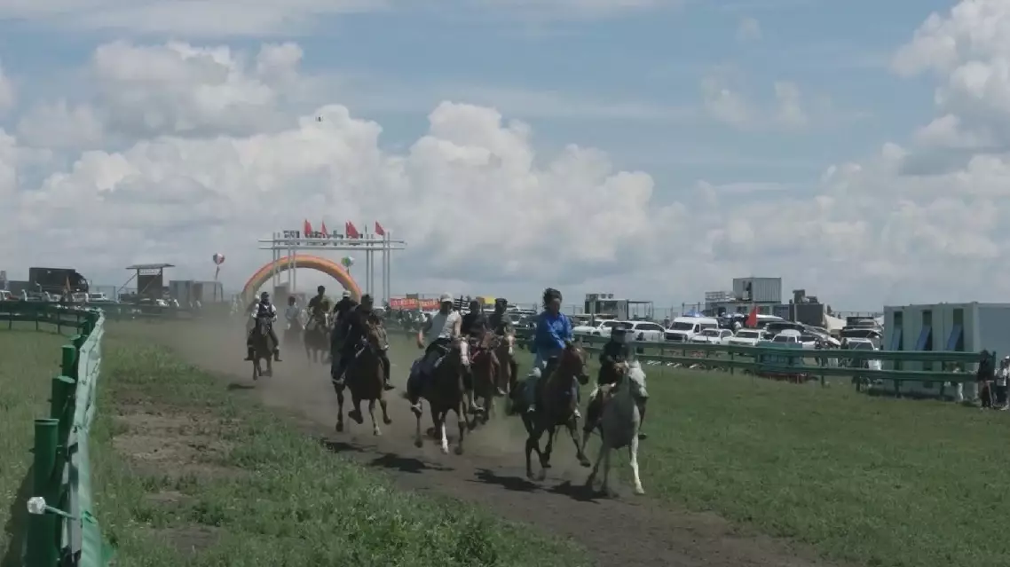 Over 300 horses galloped under the control of herders at the event. In the traditional 10-kilometer horse racing competition, 28 participants from Inner Mongolia's Hohhot, Baotou, and Ulanqab competed in a two-kilometer track, showcasing their speed and skills.
