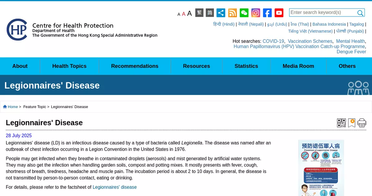The public may visit the CHP'sLD page, theCode of Practice for Prevention of LDand theHousekeeping Guidelines for Cold and Hot Water Systems for Building Managementof the Prevention of LD Committee, and the CHP'srisk-based strategyfor prevention and control of LD.