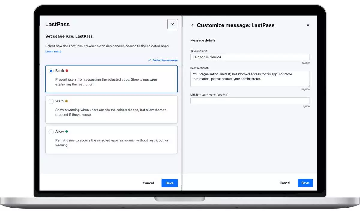 Launched in May 2025, LastPass SaaS Monitoring gave organizations and LastPass Partners a consolidated view of application usage and credential hygiene. But visibility alone isn’t enough. With 75% of employees expected to use unauthorized tech by 2027, businesses need a way to intervene quickly and confidently.
