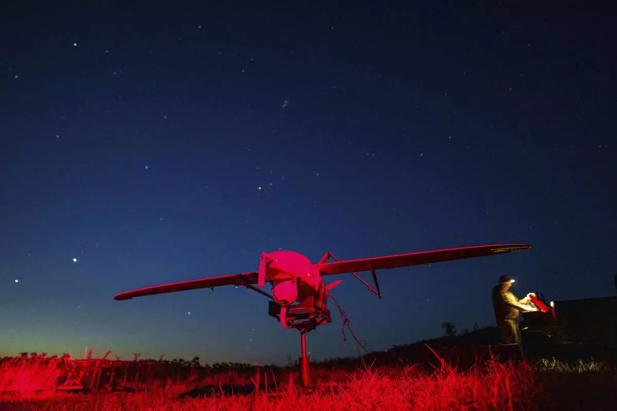 Ukrainian National Guard serviceman of 3rd brigade «Spartan» prepares for flight a Penguin UAV near the frontline at Pokrovsk direction, Ukraine, on Wednesday, August 6, 2025. (AP Photo/Evgeniy Maloletka)