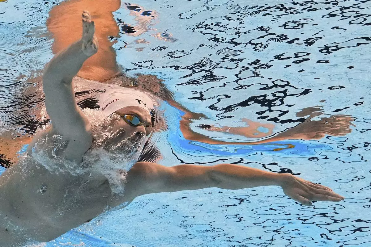 Ahmed Jaouadi of Tunisia competes in the men's 1500-meter freestyle final at the World Aquatics Championships in Singapore, Sunday, Aug. 3, 2025. (AP Photo/Vincent Thian)