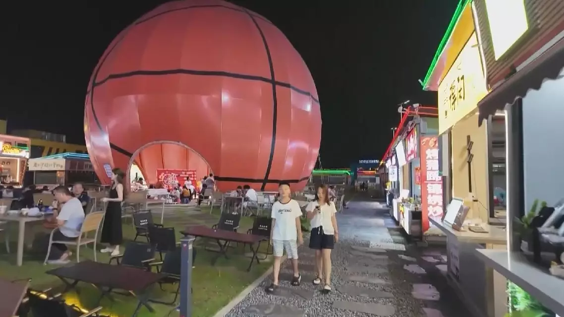 Located just 100 meters from the Dongguan Basketball Center, the "Basketball Night Market" covers 9,000 square meters. A massive basketball-themed canopy marks the entrance, drawing in both locals and tourists.