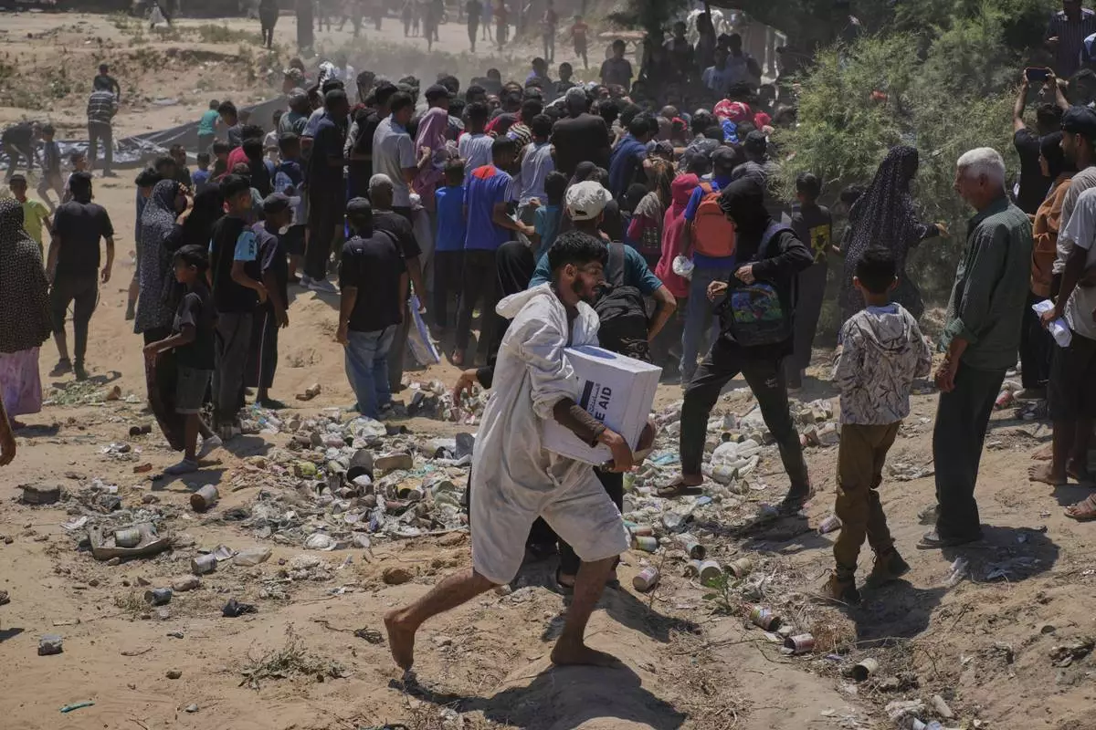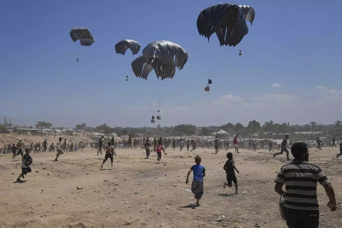 This photo gallery, curated by AP photo editors, shows Palestinians scrambling to get humanitarian aid that was airdropped by parachutes in Gaza Strip.