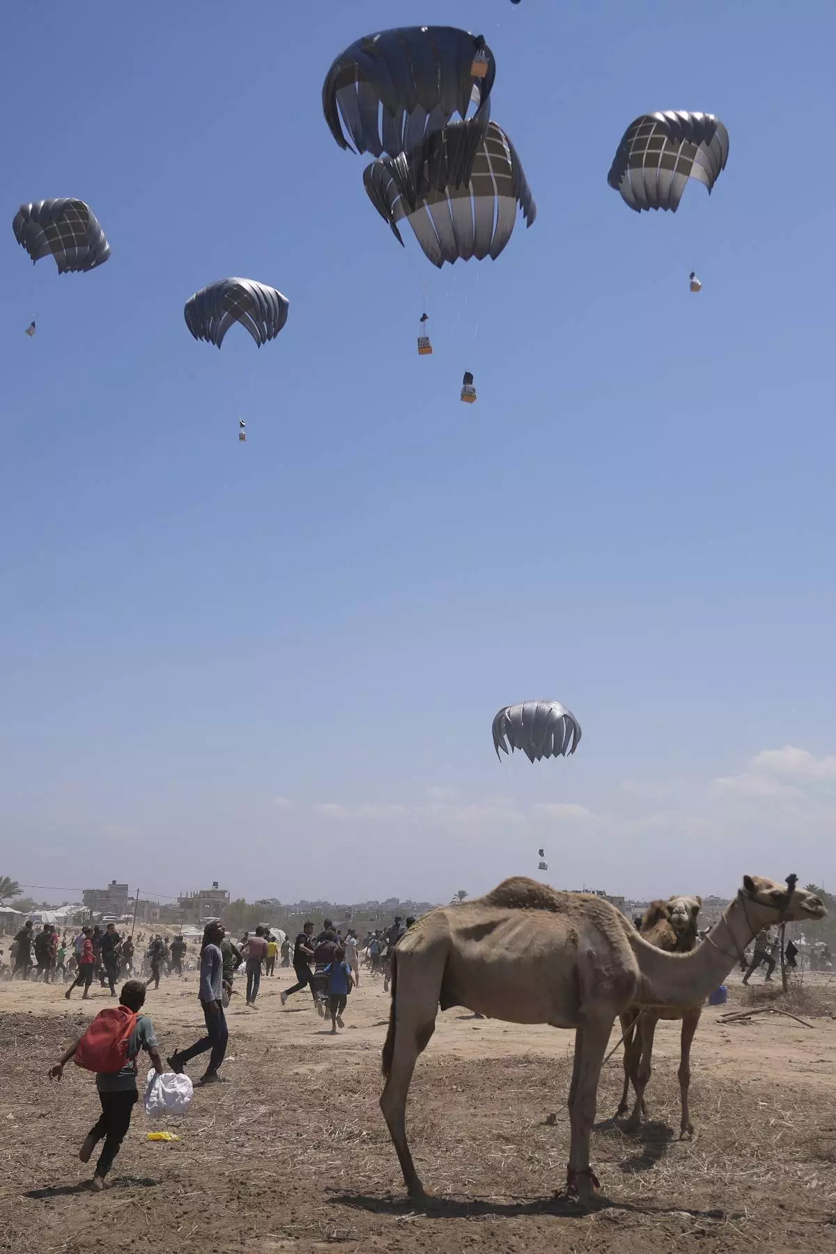 “I wish they would deliver it through the (land) crossings,” Rabah Rabah said earlier as he waited for the airdrop. “This is inhuman.”