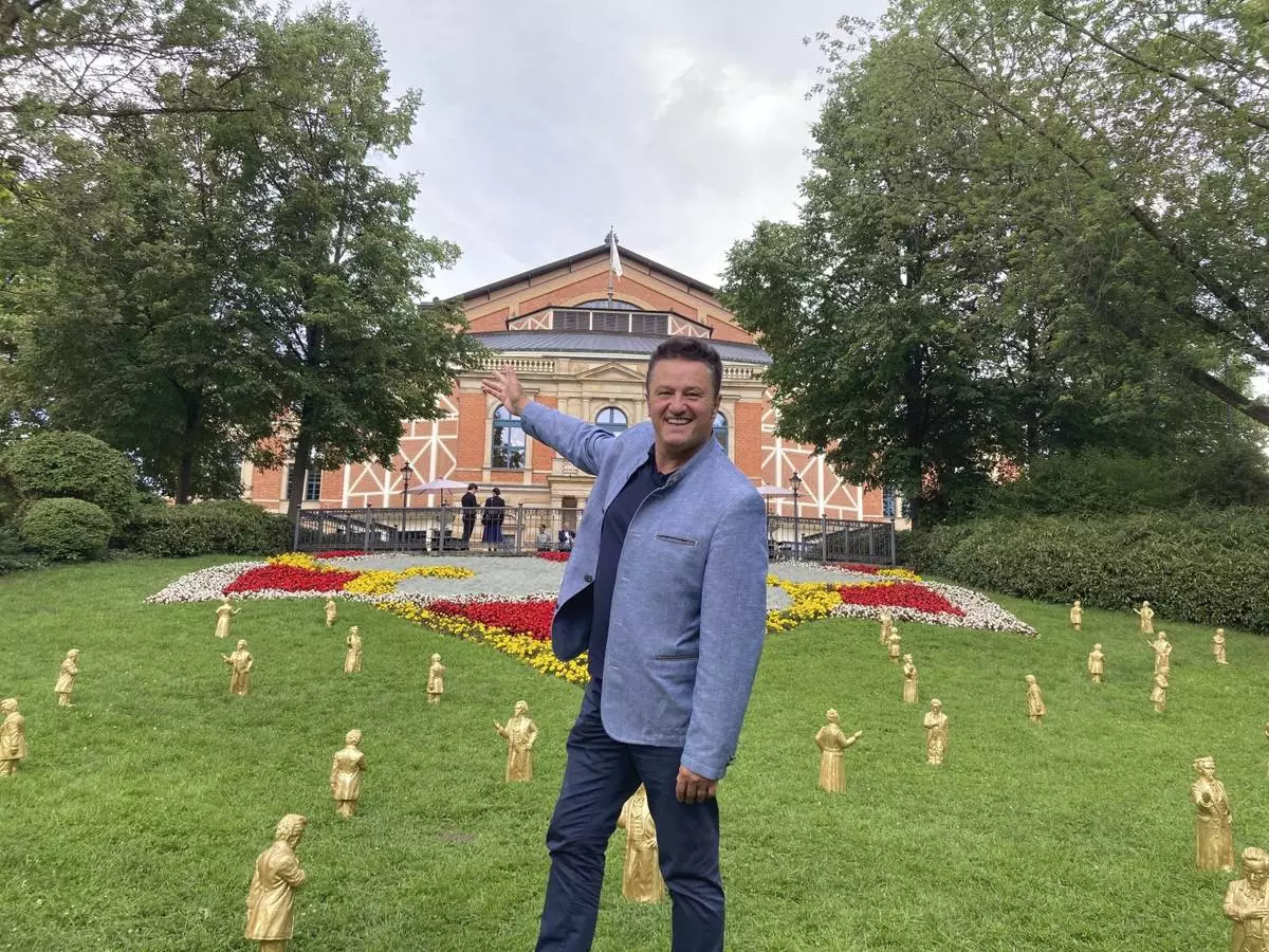 Tenor Piotr Beczala poses outside the Festpielhaus at the Richard Wagner Festival in Bayreuth, Germany, on Aug. 2, 2025. (AP Photo/Ron Blum)