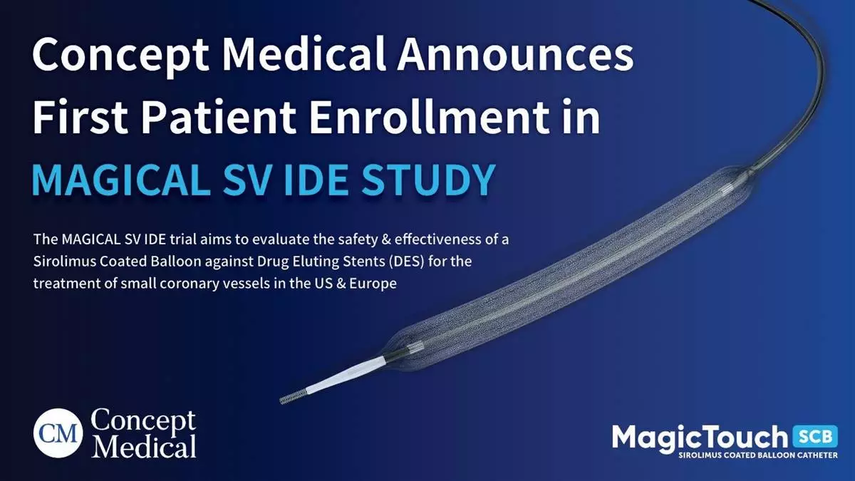 Concept Medical Inc., a global pioneer in drug-delivery technologies, announced the enrollment of the first patient in the MAGICAL-SV ( MAGI cTouch™ Sirolimus-Coated Balloon for Treatment of C oronary A rtery L esions in S mall V essels) trial, a U.S. Investigational Device Exemption (IDE) study evaluating its MagicTouch™ sirolimus-coated balloon (SCB) for the treatment of small coronary vessels. This first U.S. enrollment follows the FDA’s IDE approval of MagicTouch SCB, marking a major milestone in Concept Medical’s mission to revolutionize coronary artery disease (CAD) treatment and expand its clinical program into the US and Europe.