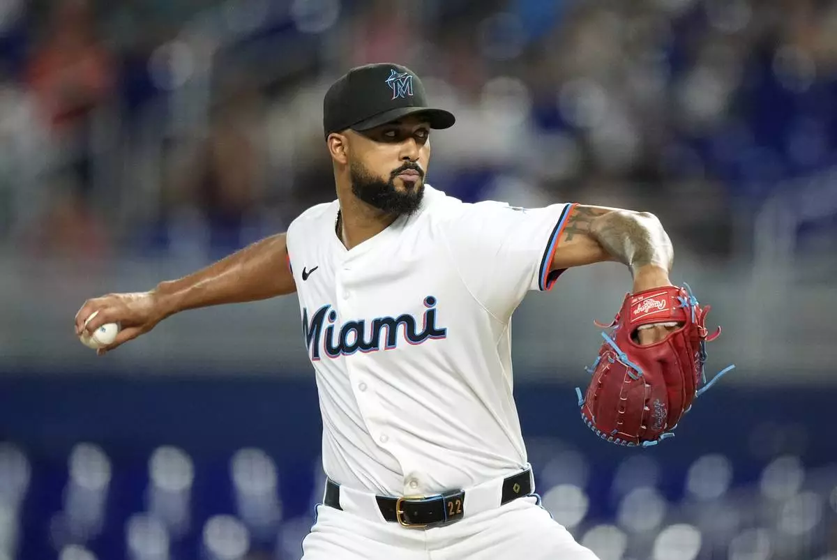 Miami Marlins starting pitcher Sandy Alcantara (22) pitches in the second inning of a baseball game against the Houston Astros, Monday, Aug. 4, 2025, in Miami. (AP Photo/Rebecca Blackwell)