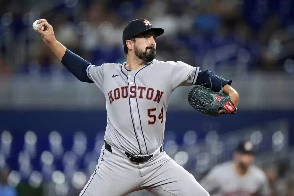 The Astros built a 5-0 lead during a disastrous fourth by Marlins starter Sandy Alcantara (6-10), who was perfect his first time through the Houston order before giving up six hits in the inning.