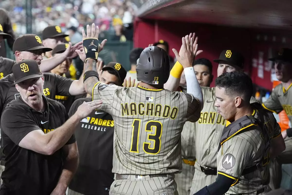 Manny Machado doubled with two out and scored when Jackson Merrill followed with another double in the third. Gavin Sheets drew a two-out walk, moved to second when Ramón Laureano singled and scored on a single by Jake Cronenworth to make it 5-2.