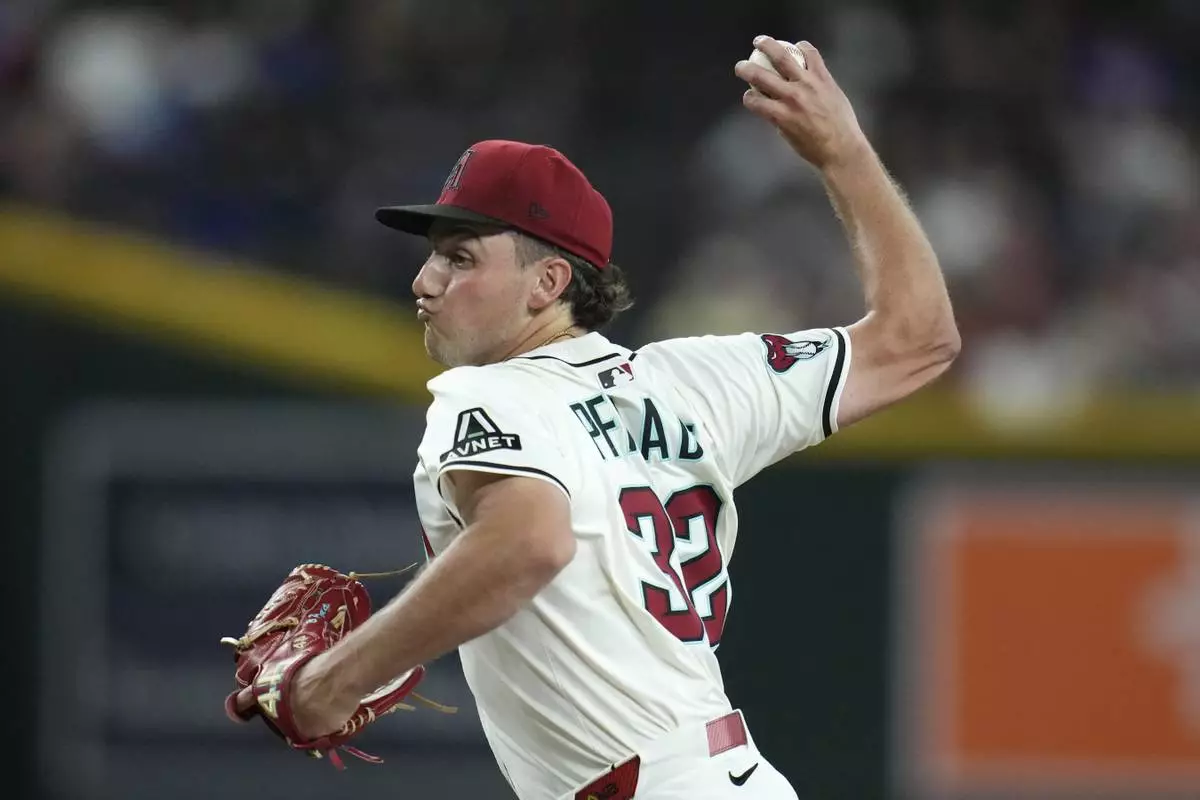 Arizona Diamondbacks starting pitcher Brandon Pfaadt throws against the San Diego Padres during the fifth inning of a baseball game Monday, Aug. 4, 2025, in Phoenix. (AP Photo/Ross D. Franklin)