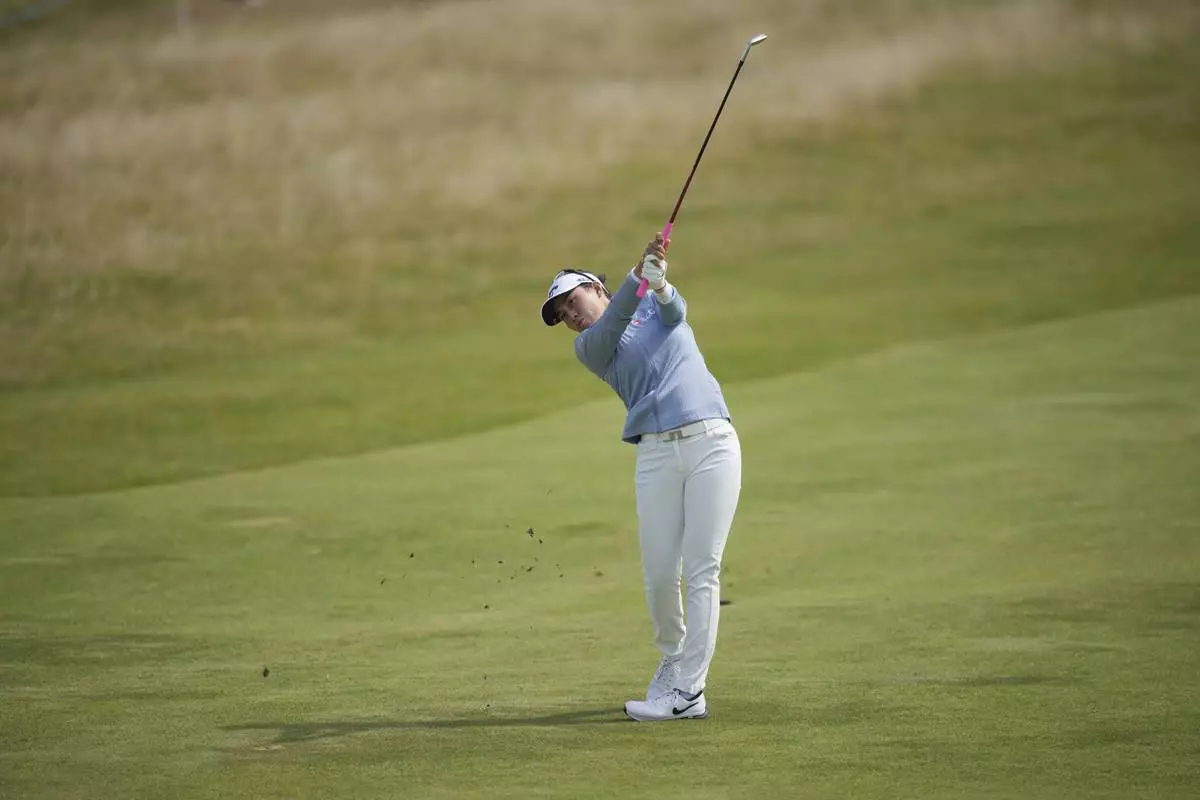 Jeeno Thitikul of Thailand competes during the first round of the Women's British Open golf championship, at Royal Porthcawl Golf Club in Porthcawl, Wales, Thursday, July 31, 2025. (AP Photo/Kin Cheung)